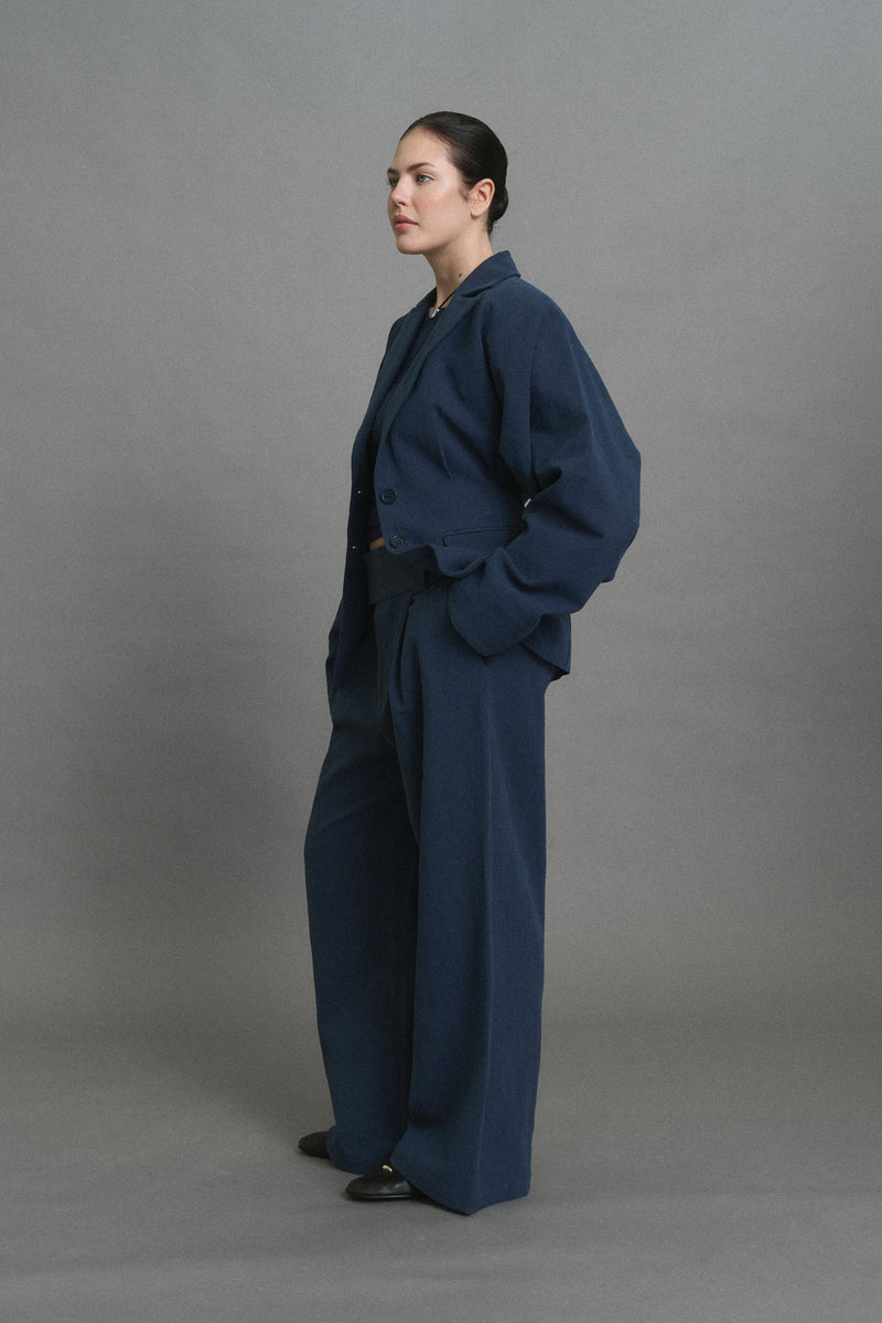 The Lara Trousers are designed with a wide, flattering waistband and a softly structured wide-leg silhouette. The clean lines and tailored finish create an elegant expression that feels both relaxed and refined.